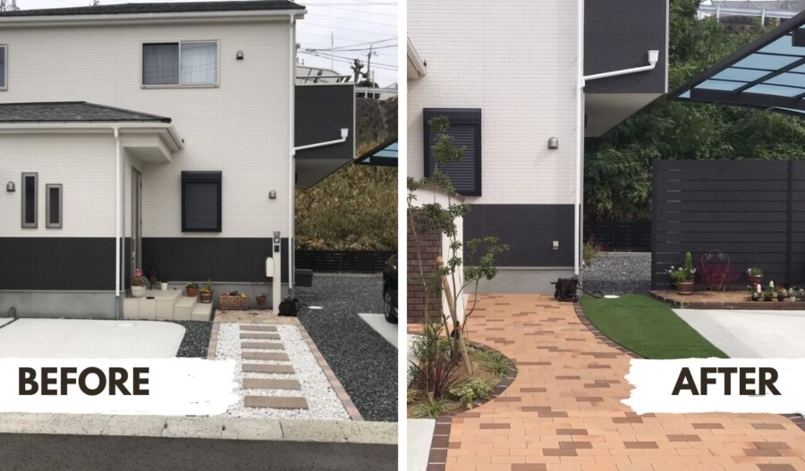 施工後は草引きから解放され、休日をご家族とゆっくり過ごせるようになり、雨の日の泥はねや虫の悩みも解消されました。