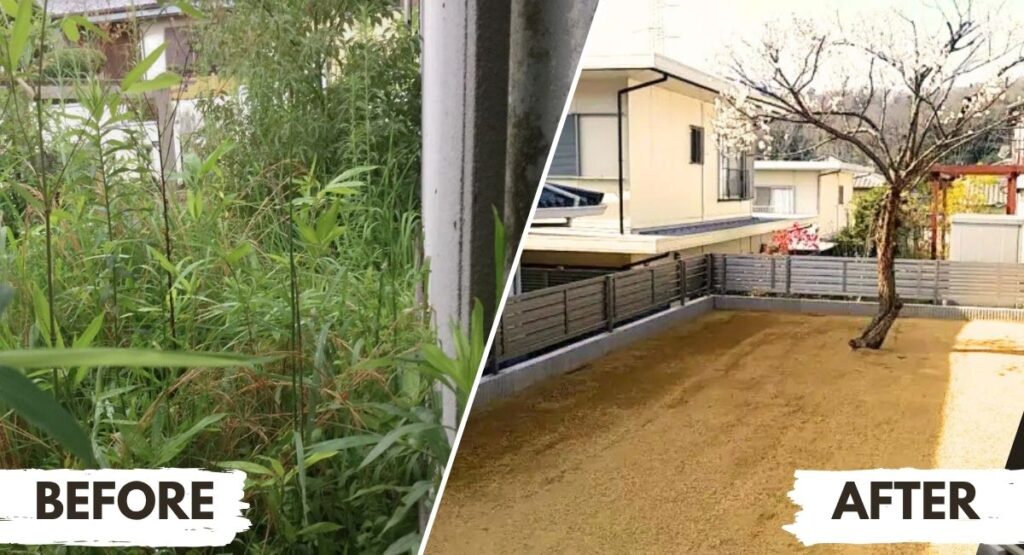 最適な除草剤の活用で厄介な笹を根本から根絶。ご近所トラブルの不安も解消され、貴重な休日を草刈りに奪われない、管理が楽なお庭へと変貌しました。