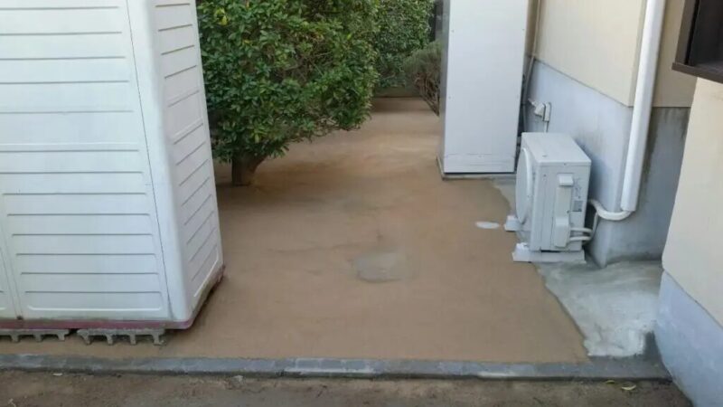 一方、固まる土は一度施工すれば、掃き掃除もしやすく、見た目も整うため、メンテナンス性は非常に優れています。ただし、雨が多い地域や傾斜がある場所では水はけが悪くなるリスクがあり、施工ミスがあるとひび割れ・ぬかるみが発生しやすいです。