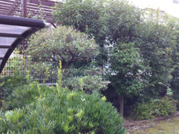 K様は、以前から剪定をお願いされていた業者の方に、車庫を作るとしたらどれぐらい費用がかかるものなのか聞いたところ、「土を取り除いて、車庫作るだけで車が1台買えるぐらいかかる」との回答だったので、他のところを探してみようと、インターネットで西原造園を検索されたそうです。