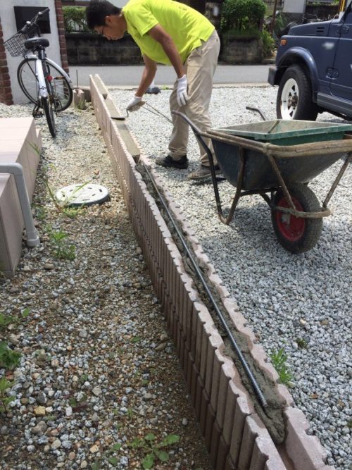 牧浦様は、お家を建てられてご自分で境界ブロックを積まれました。途中までご自分でブロックを積まれて、加工しないといけない難しい箇所などがまだできずに残っているという状況でした。
