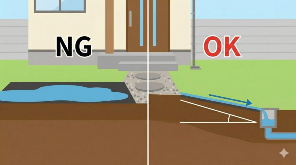 【基本】地面に傾斜(水勾配)をつけて雨水を逃がす