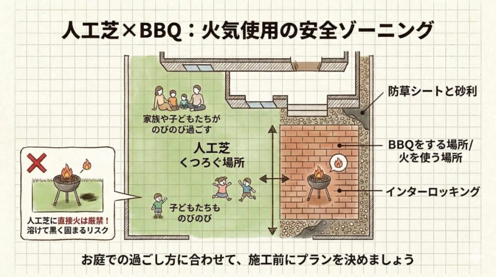 人工芝の上でバーベキューは危険?庭でBBQを安全に楽しむ5つの対策と注意点|奈良県斑鳩町の事例