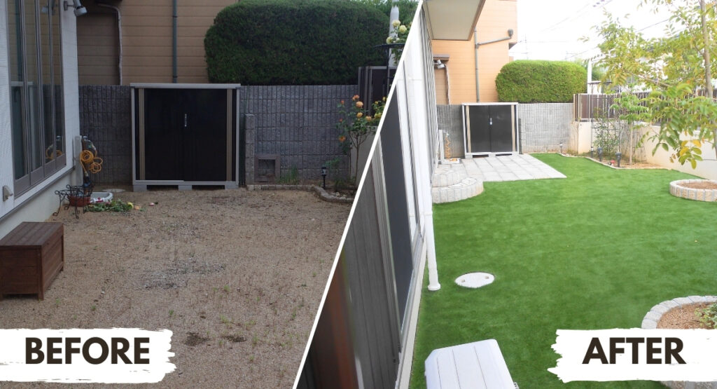 奈良県大和郡山市|人工芝で雑草対策をして子供の遊び場に庭をリフォームした事例