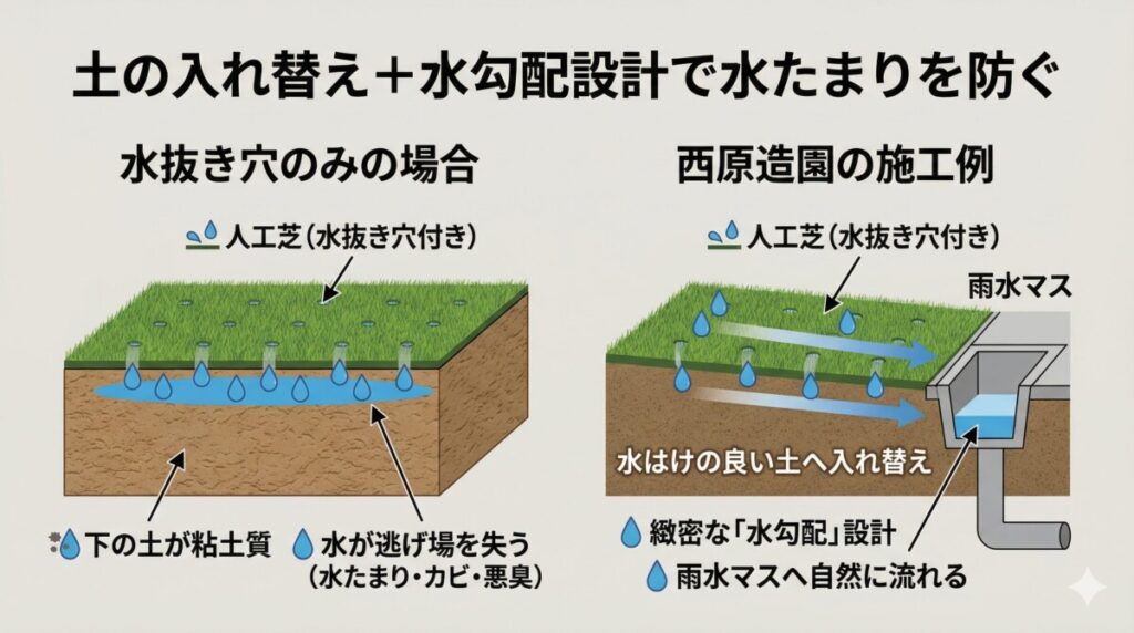 人工芝を敷くと、水はけは悪くなりませんか?