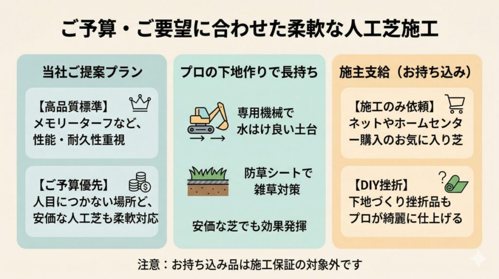 用意した人工芝を使って、施工だけお願いすることはできますか?