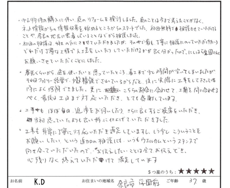 奈良県にお住まいのK様は、手入れが大変な和風庭園を、管理が簡単で現代的な洋風庭園にリフォームしたいとご希望でした。
